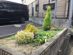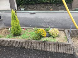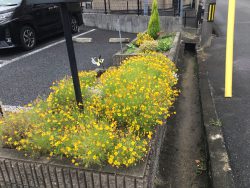 ディサービス道明寺の花壇にお花がきれいに咲いています。