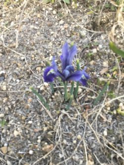 同じ花壇には、ひっそりと紫色の小さなアイリスが咲きました![]()
