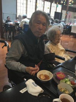 今日の行事食、「たけのこ五膳」を皆さんに召し上がって頂きました