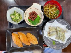 】いなり寿司にシシャモの天ぷら、茶そば、などなど![]()