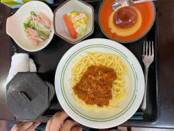 そしてとある日のお昼ご飯は【ミートスパゲティ】と【白身魚のムニエル】の二択です。