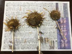 ディサービス駐車場入り口の花壇にひまわりが咲いています。