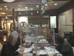 ディでも桜の壁飾りを利用者様と一緒に作りました。