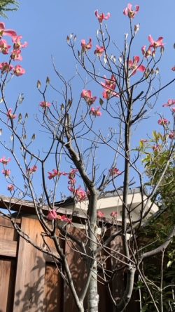 中庭に足を踏み入れてみると、「ハナミズキ」が可愛いピンク色の花を咲かせています。