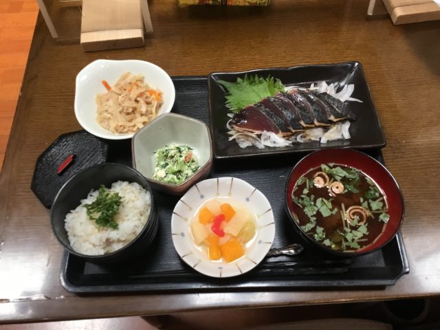 そんな先週でしたが、今週の火曜日はかつおのたたき定食でした。