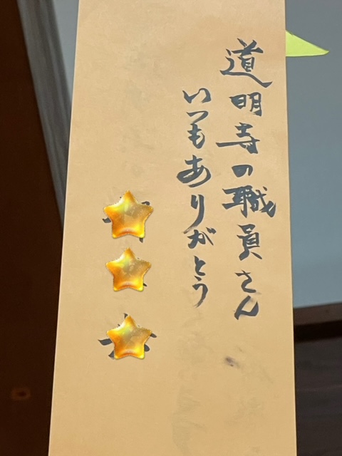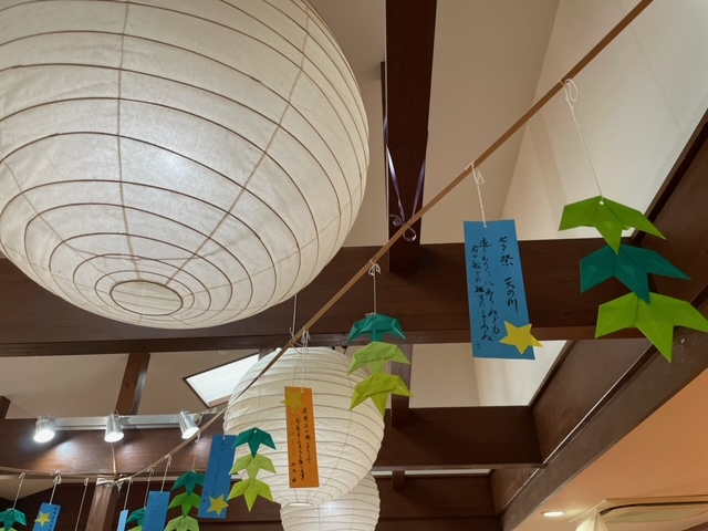 デイサービス道明寺のフロアには皆様のお願い事がたくさん揺れております。
