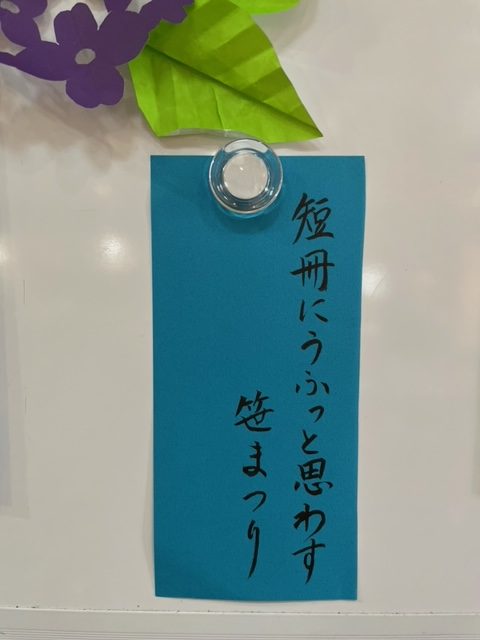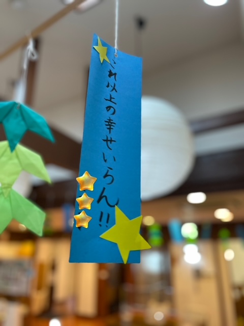 職員Oさんは七夕の短冊をみて一句。すぐに思いつく所が素晴らしいです!