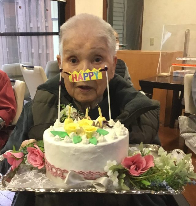ろうそくの火を消していただき、皆さんにお誕生日の歌を歌って頂きました。