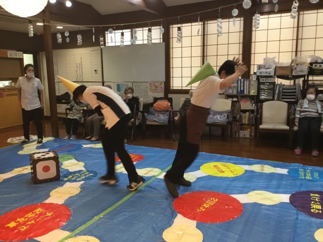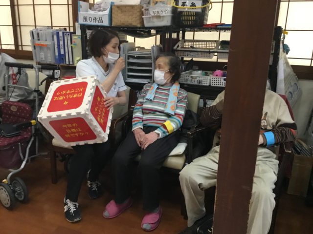車椅子から立って力いっぱい大きなサイコロを振り転がしてくださったり、皆様、楽しい時間を過ごされました❣