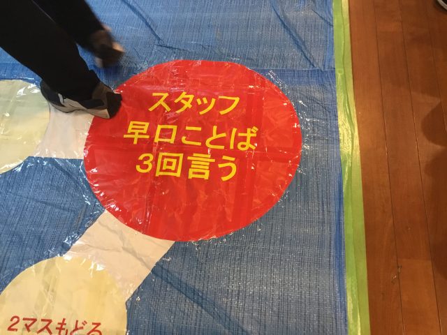 利用者様、職員が4チームに分かれてゴールを目指してサイコロの転がして、そのお題をクリアしていくゲームです!