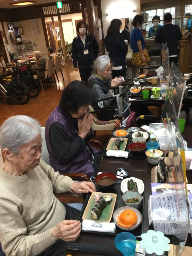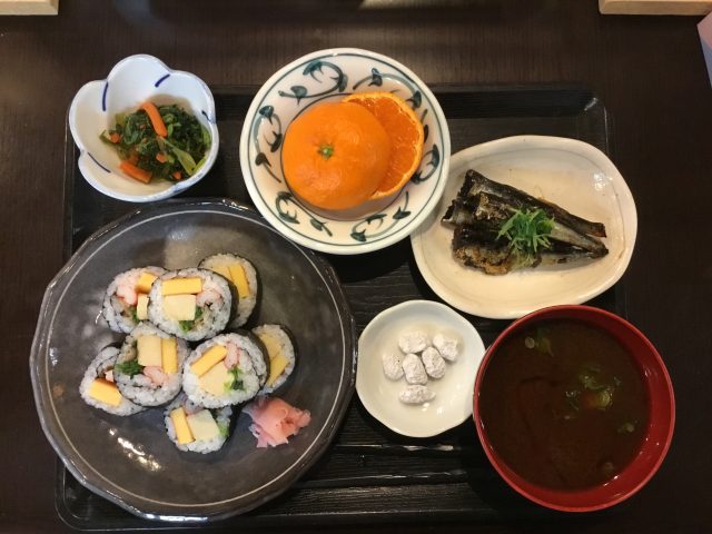 お昼ご飯は、節分巻きずし 鰯の生姜煮です。