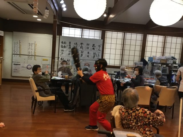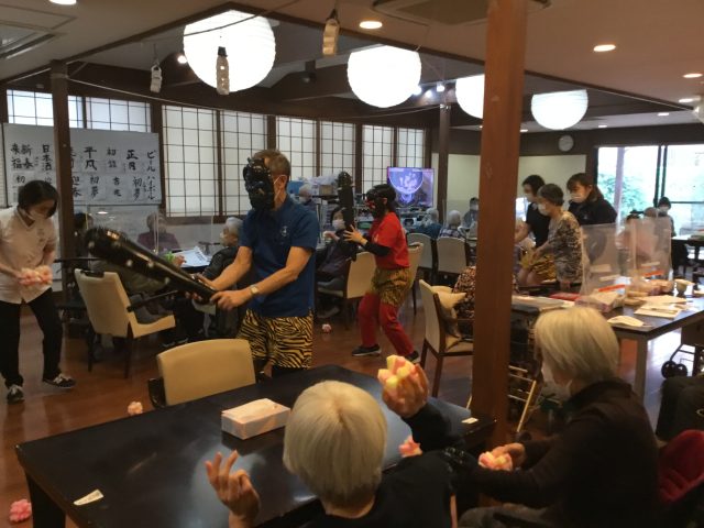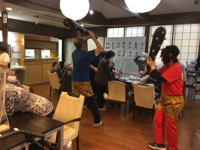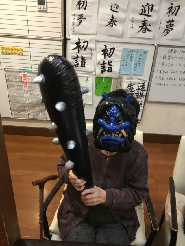皆さまで豆(スポンジ豆風)を鬼さんに投げて無事追い払いましたよ!!