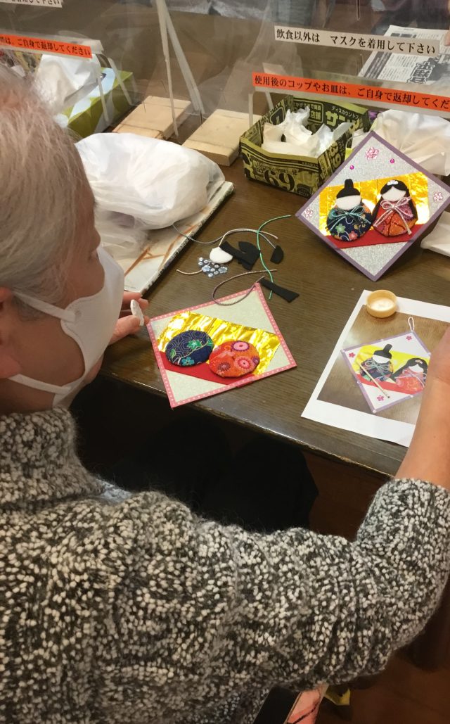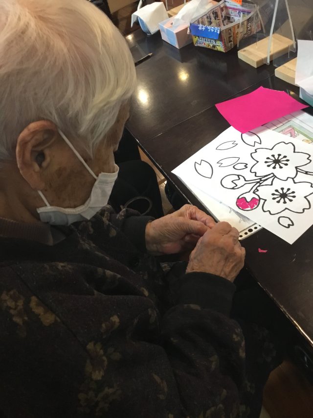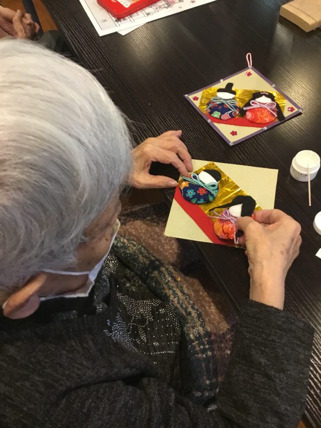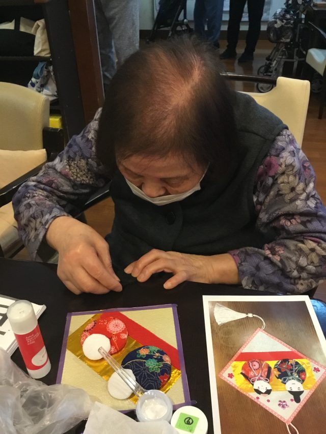 真剣に取り組まれている利用者I様❣お雛様とお内裏様がま~るくて仲良くおさまっておられますでしょう💕