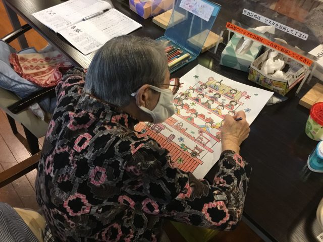 こちらのI様はひな祭りの塗り絵にコツコツと取り組まれてます。