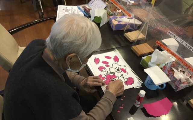お次は、M様。丁寧に丁寧に桜の花に折り紙を貼っていかれます。