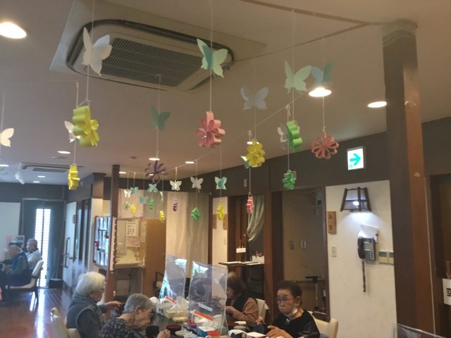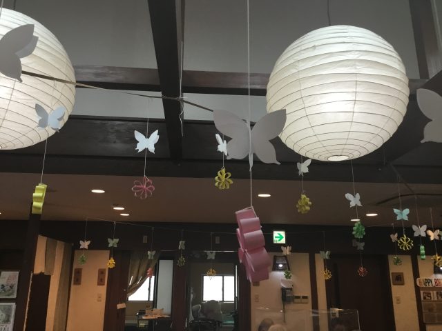 フロアの飾り付けも変わり、花と蝶々が飛び交っております。