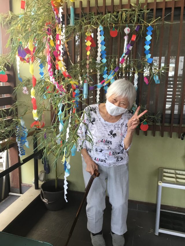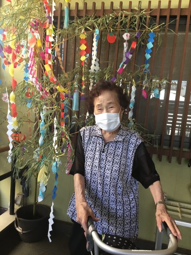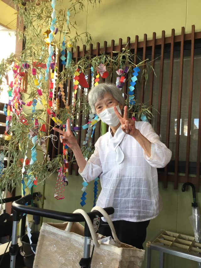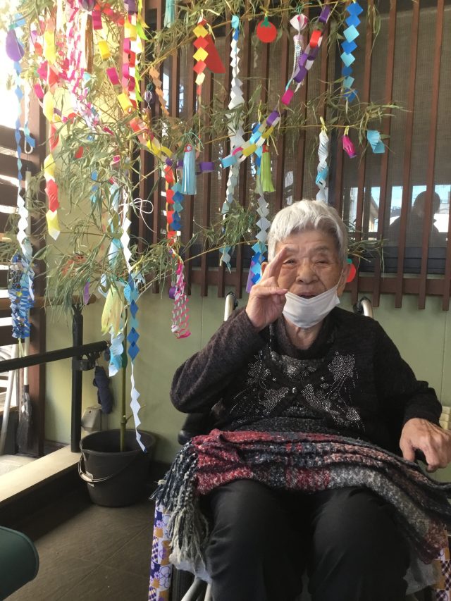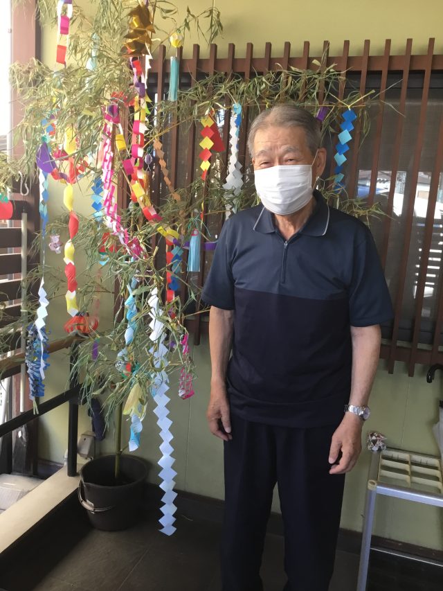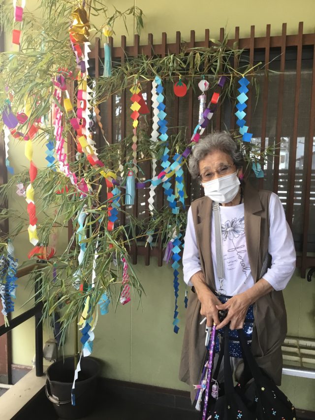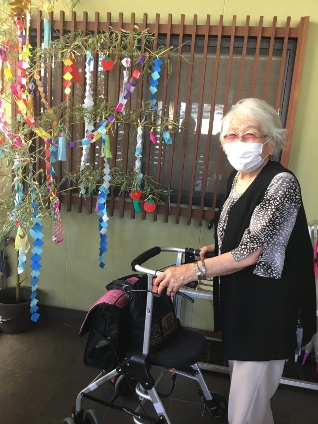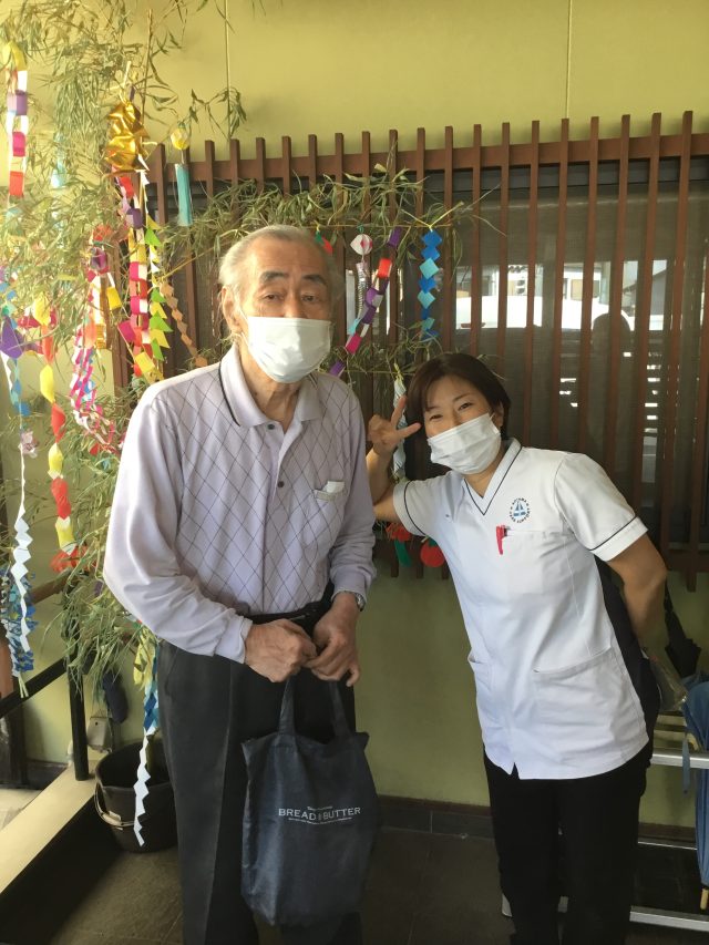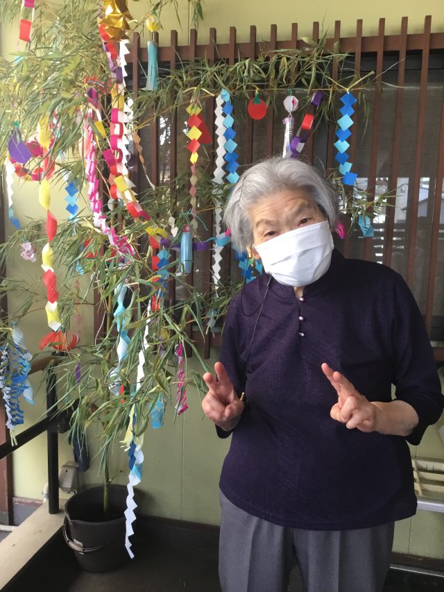 デイサービスお帰りの際、笹の前での記念撮影です。