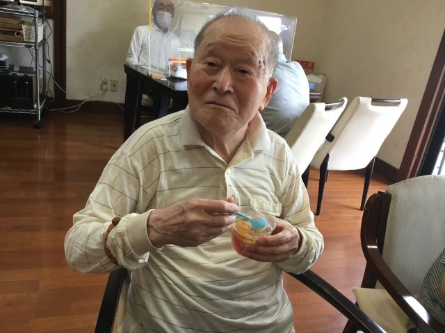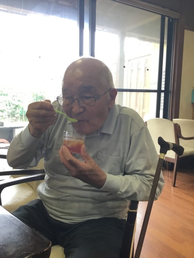 「よっしゃ!どんな味や?!」と食べられている利用者S様(^▽^)/