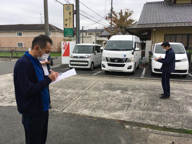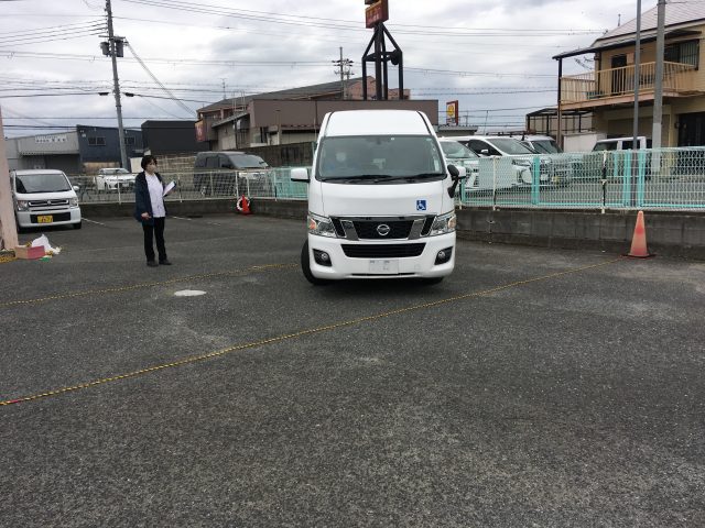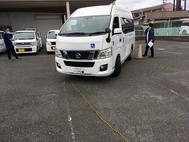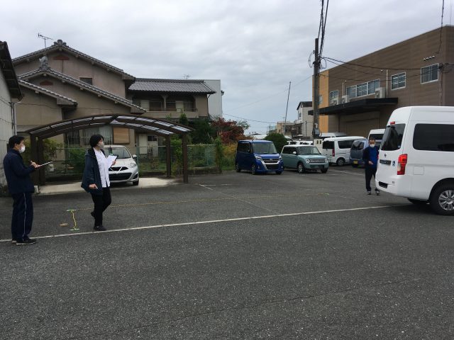 2024.10月入職した運転手の試験を青山ケアセンター羽曳野の駐車場敷地を