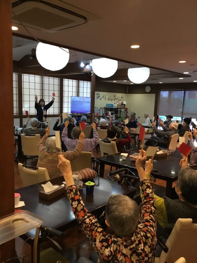 職員Kの指示のもと、赤や白の旗を上げたり下げたり