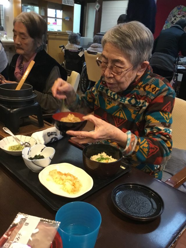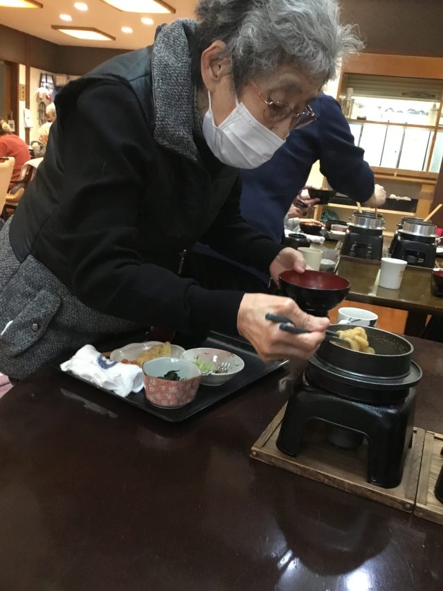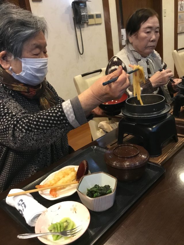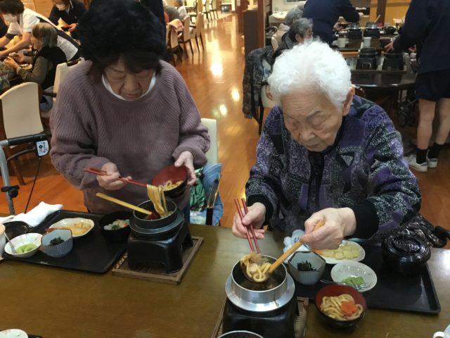 利用者M様とK様!まさに今、アツアツうどんを取り分けられています👀