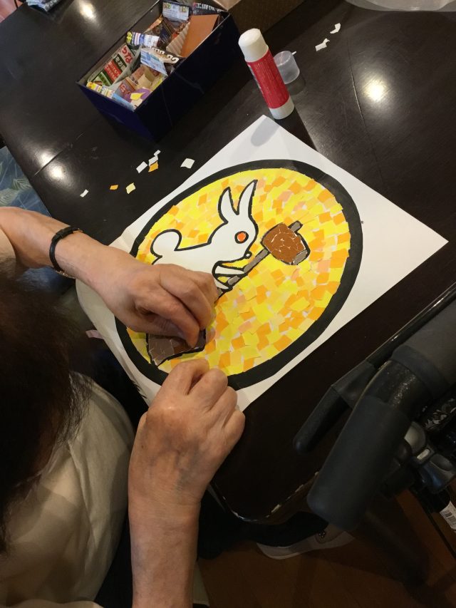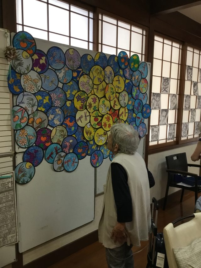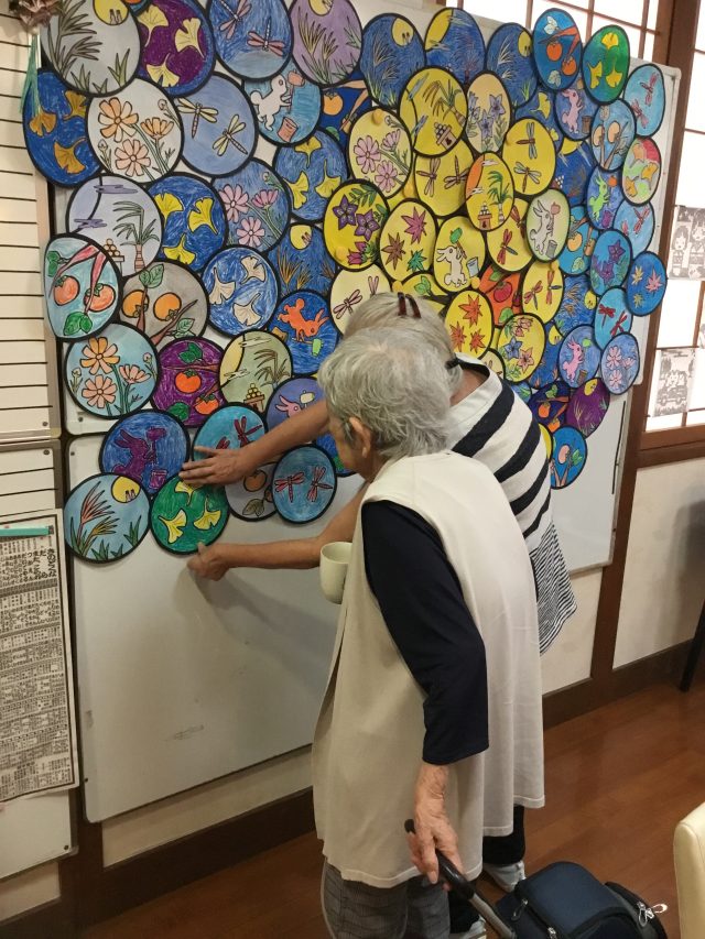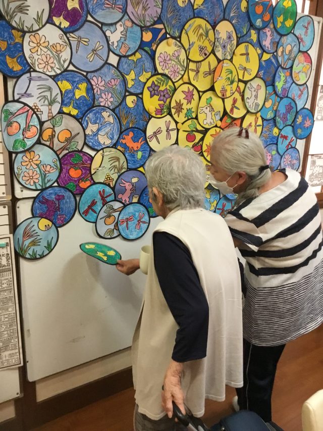 8月から利用者の皆様に作って頂いていた、十五夜の壁面飾りを
