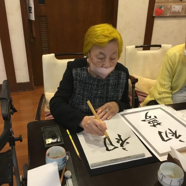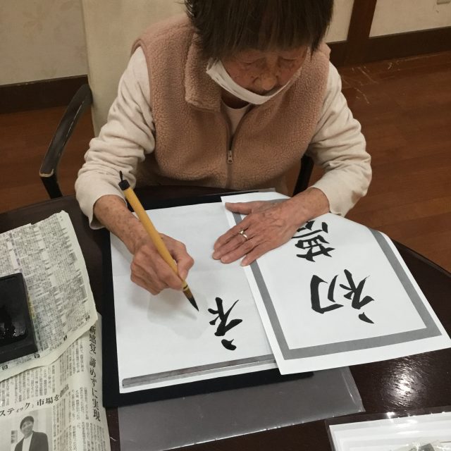 左手の絶妙な添え方から見て書道家と見える利用者Y様💗