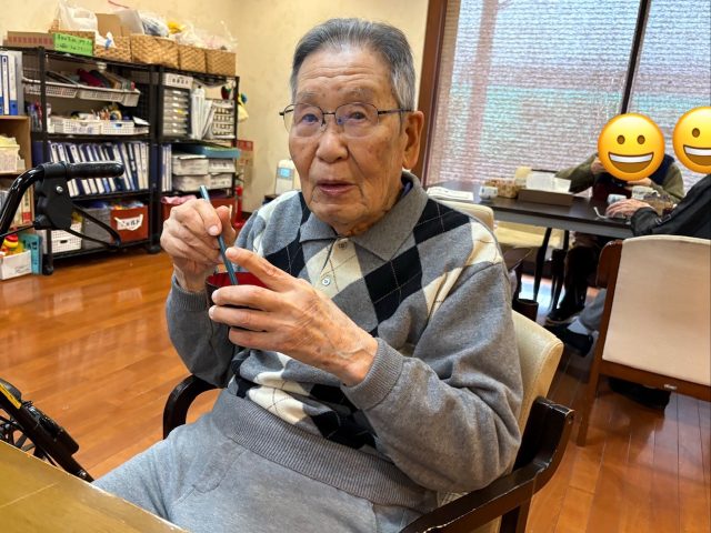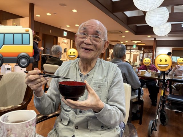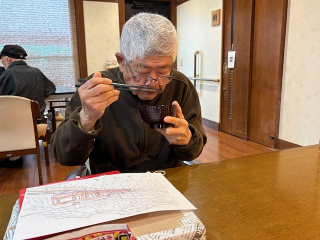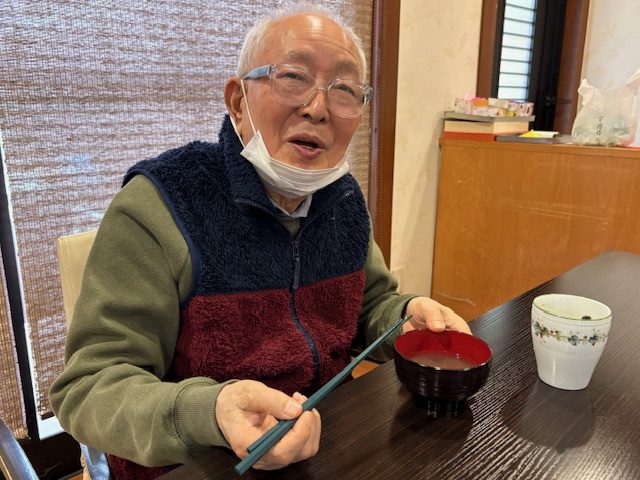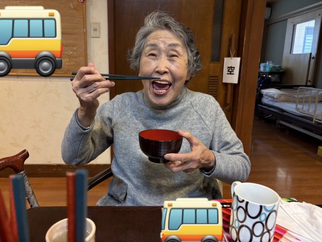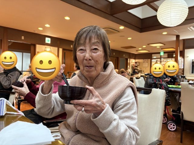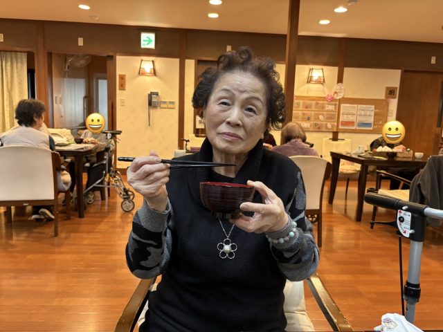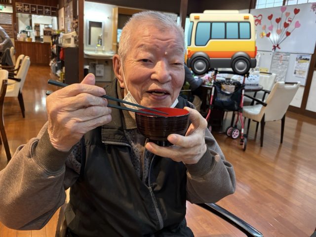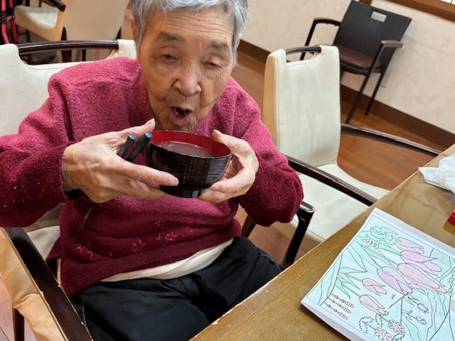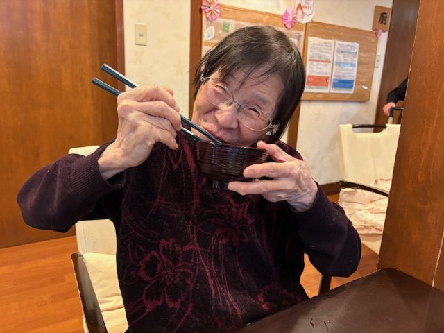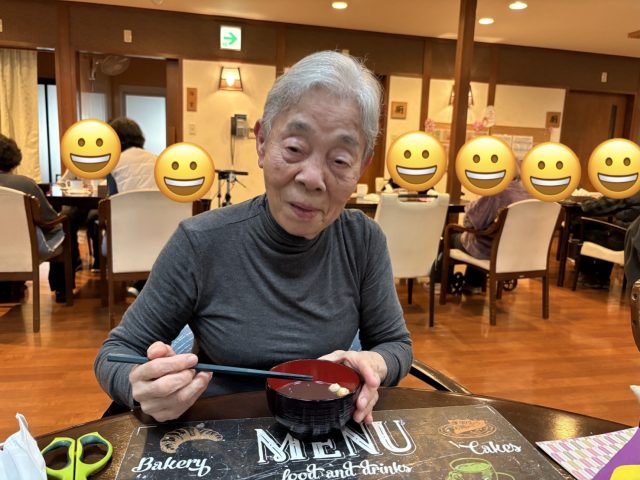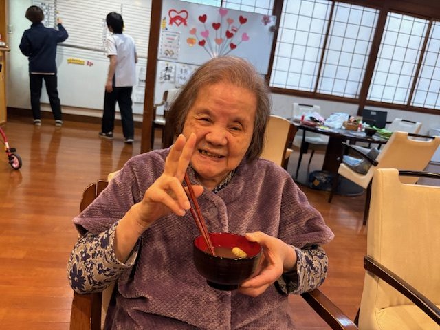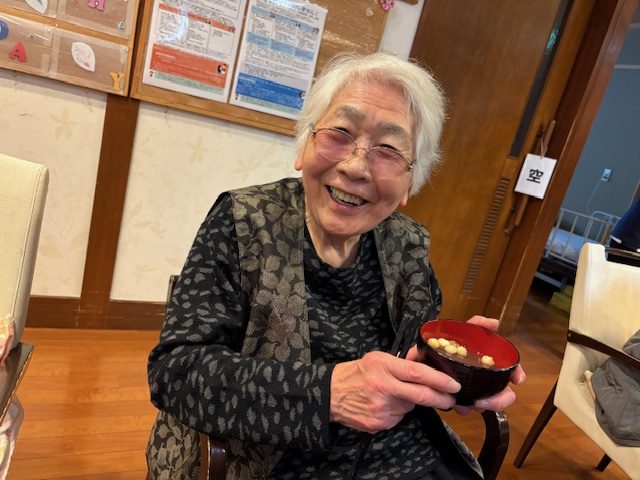 青山デイサービス道明寺では、2月3日に節分の鬼退治の前にぜんざいを食べて頂きました。