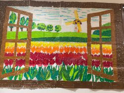 春の花、オランダ(風車が見えますか?)のチューリップを