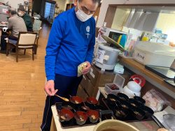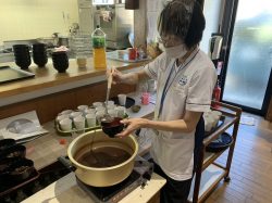 心を込めて職員が作った、ぶぶあられのお汁粉を