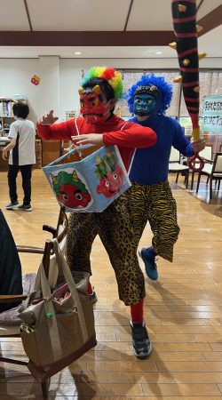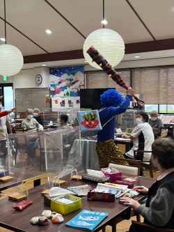 豆をまくのではなく、おじゃみを鬼が背負っている箱に投げ入れて