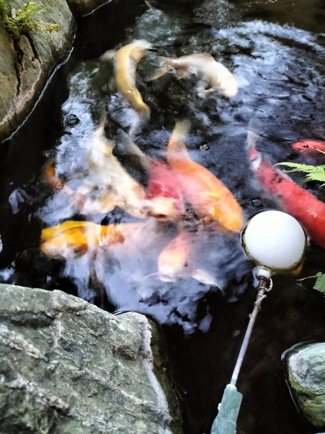 少し大きくなった鯉の赤ちゃんも一緒に泳いでおり、日に日に成長する姿に時を忘れて見入ってしまいますね☆