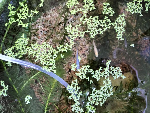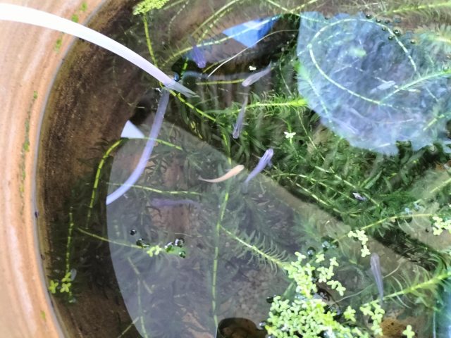 玄関の左側にはメダカと鯉の稚魚がお出迎え😊