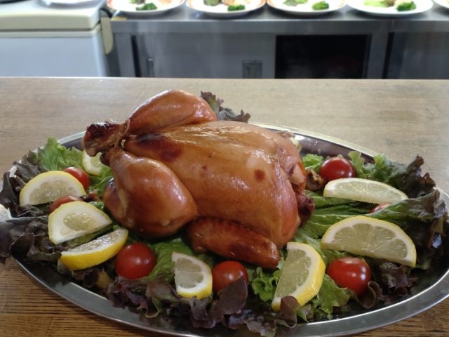 ご自宅で使ってくださっているのなら とてもうれしいですね🎵 まずはチキンの丸焼きです これを取り皿に取り分けて 提供させて頂きました