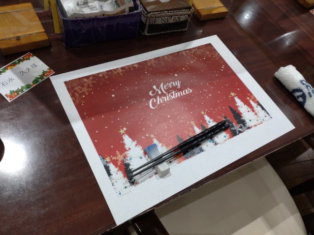 待ちに待ったお昼ごはんです🎵 まずはクリスマスバージョンの ランチョンマットを用意しました