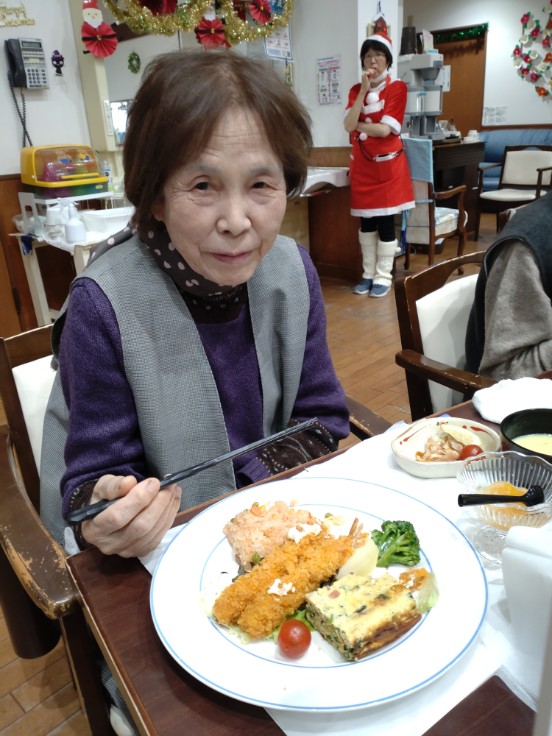 S様 「美味しいよ」 綺麗に完食してくださいました私もいただきましたが かなりのボリュームで 午後から動きたくないです(笑) この後はクリスマスコンサートや おやつの時間です 最後までご覧になっていただけると 嬉しいです🎵