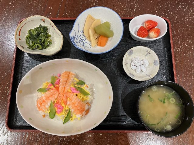 昼食は『ひな祭り膳』でちらし寿司が出ました🌸