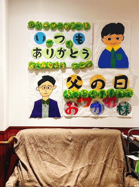 この壁画は女性のご利用者様がお父さんをイメージして作ってくださっていました!