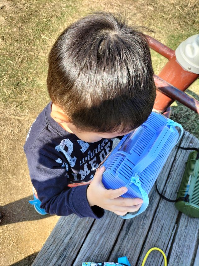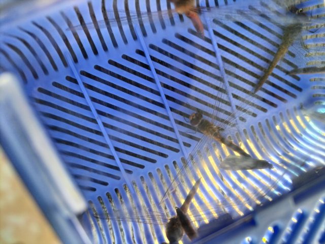 触るのは怖いけど見るのは大丈夫と時折、虫かごを振って飛び回るトンボを観察していました☆