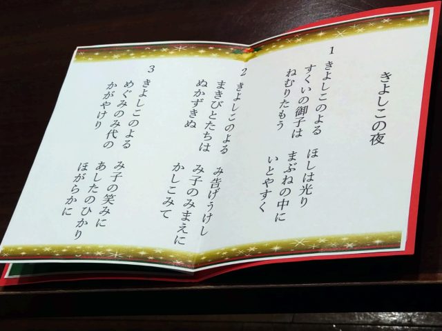 午前中に歌詞カードを作って、みんなで演奏に合わせて合唱しました