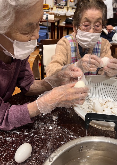 そんな中、デイサービスではおやつ作りのイベントとして、玉子サンドとフライドポテトを作りました🥪🍟