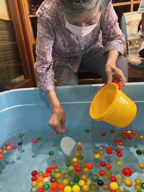 デイサービスではそんな暑さを吹き飛ばして頂けるように、夏らしい催し物を開催しています(*^-^*)