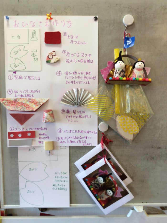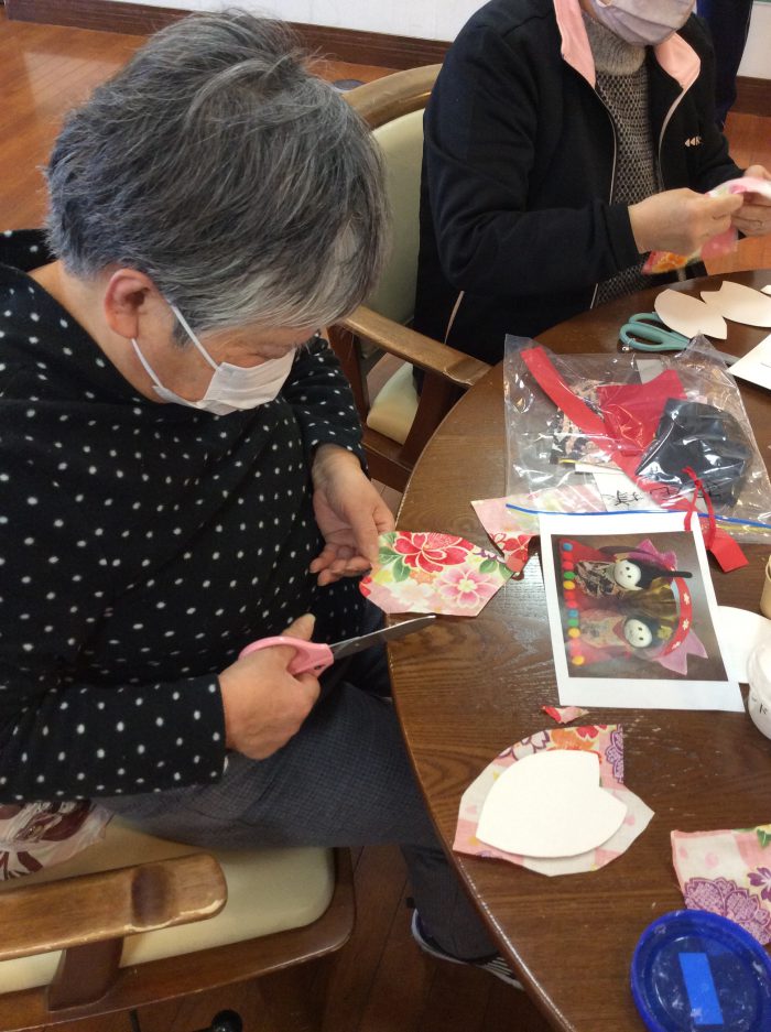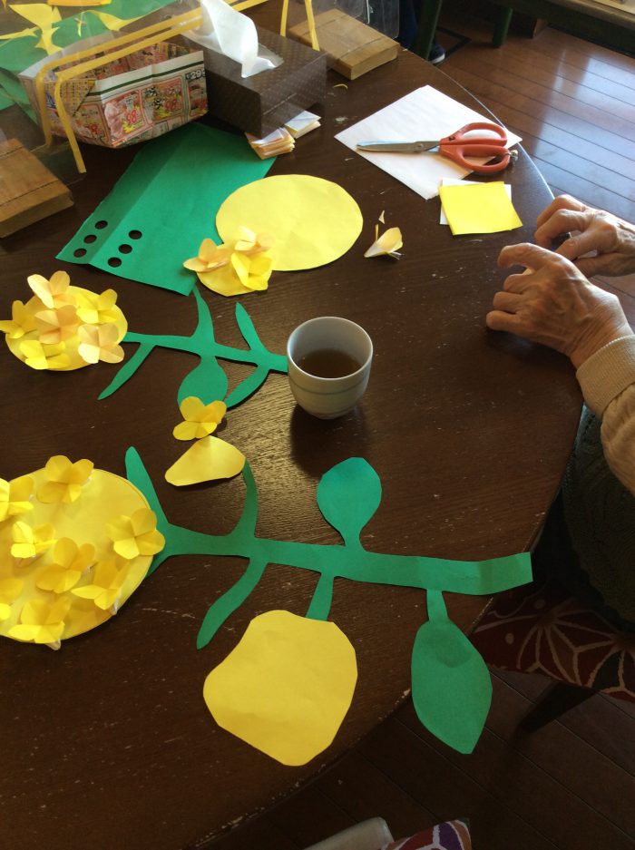 ご利用者様にも手伝って頂きながら、春らしい飾りのパーツ作成は進行中です。