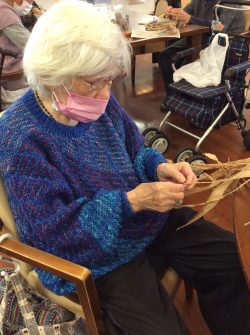 麻ひもを編んでおられるところです。