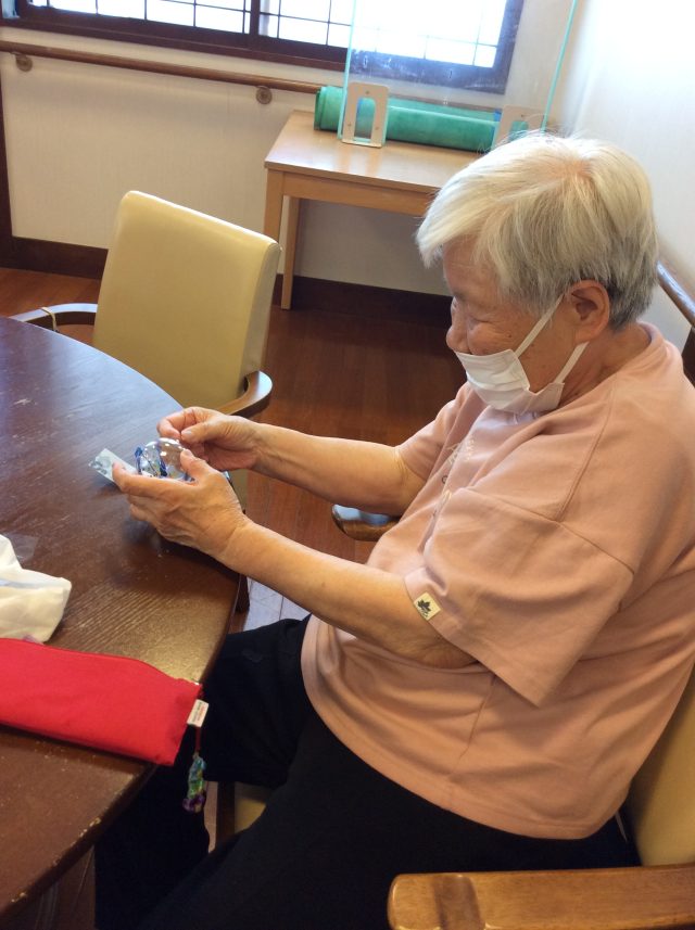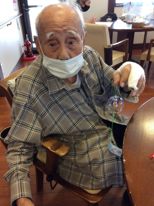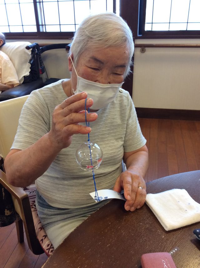 青山デイサービス北余部では、風鈴の絵付けと手作りおやつを七夕イベントとして開催しました