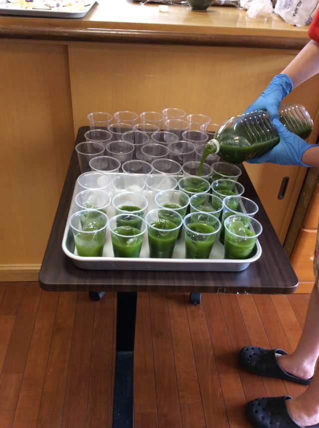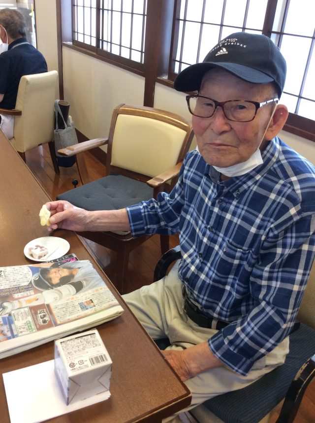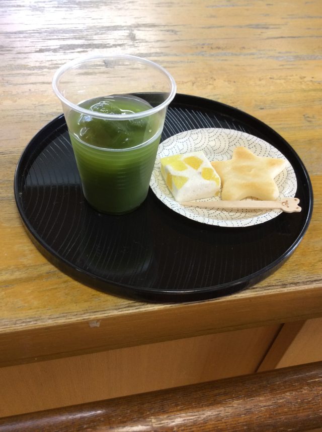 一服しませんか?と声をかけて、おやつ時間にしました。グリーンテイを2杯、飲まれている方もおられ大変喜ばれていました