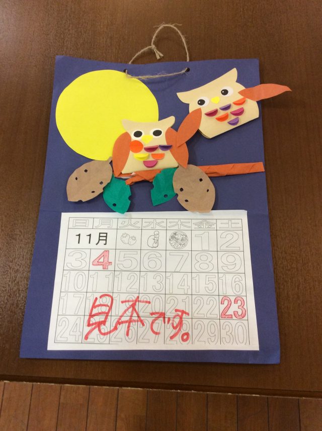 フクロウが可愛らしく枯れ葉も秋を感じ