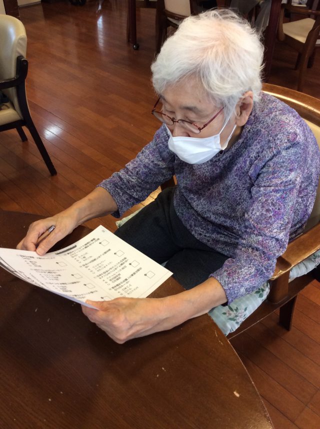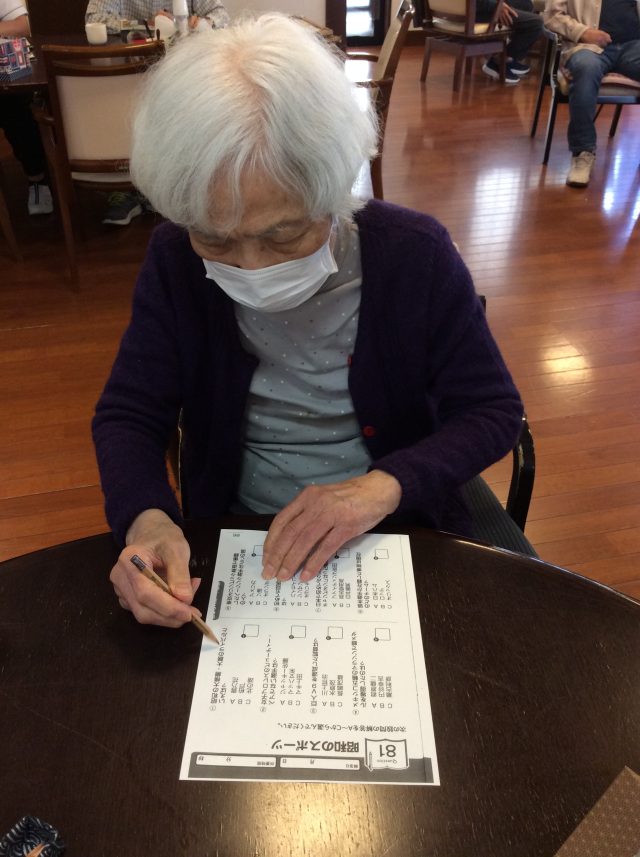 いつも午後三時に提供させて頂いている脳トレプリントとじっくり対峙するUさん。