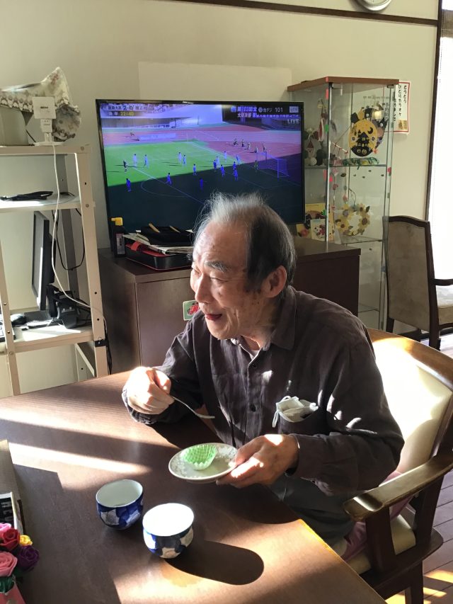 本日のおやつの、蒸きんつばと一緒に召し上がられました。