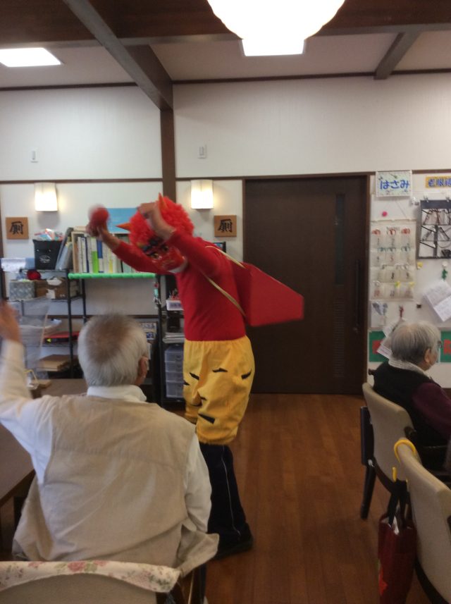 2月の節分イベントでは、赤鬼さんもみんなに豆を
